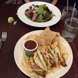 I am always looking for the next happy hour. I think I found it. Started with a meatball bite. Wedge salad with blue cheese dressing and lots of chopped up goodies. Then pita and humus dip. The humus was thin but nicely flavored. Shrimp salad over lettuce. And chicken wings with multiple options for flavoring. We went with Thai mango sauce that brought heat and sweet. No misses. Check them out.